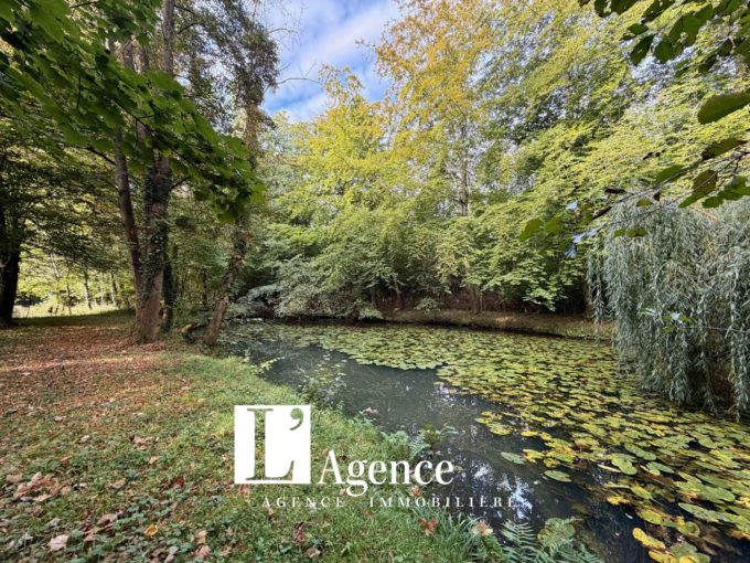 Parcelle de bois avec étang et rivière d’une surface totale…
