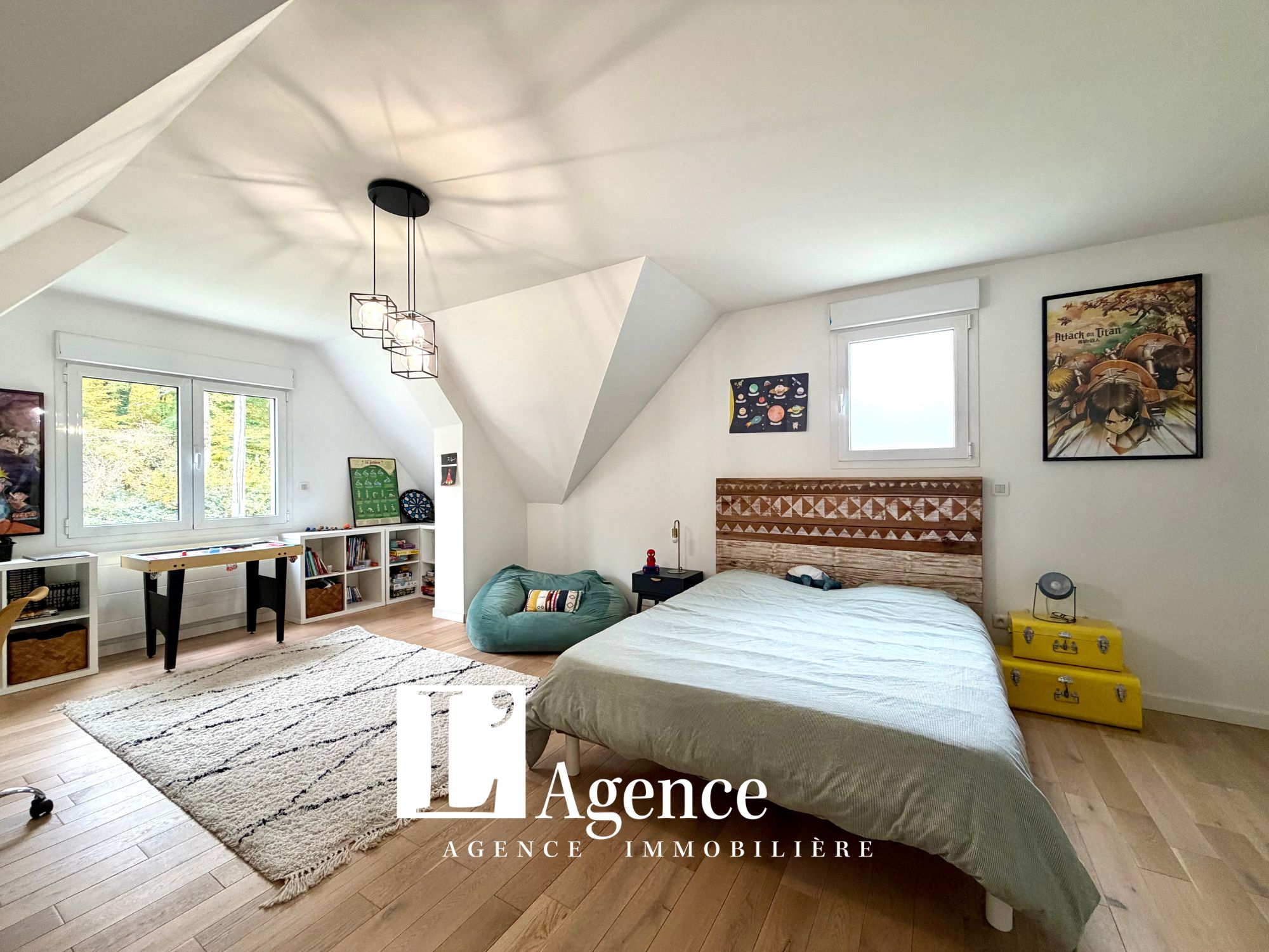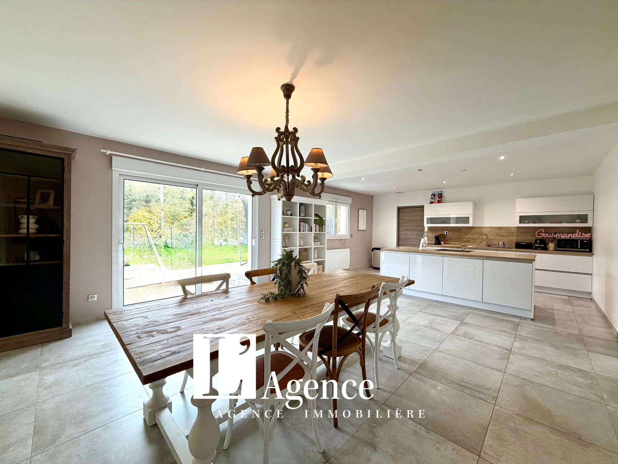 Pavillon individuel de construction traditionnelle situé à 8 Km de Beauvais offrant un hall d’entrée, une cuisine aménagée et équipée ouverte sur salle à manger-salon, un cellier, un WC avec lave mains, 1 suite parentale avec salle de bains (douche et baignoire) et 1 chambre. A l’étage une grande pièce palière (chambre ou bureau possible) et un dégagement distribuant 4 chambres et une salle de bains avec WC. Garage. Terrasse. Terrain clos de 969 M2 environ.