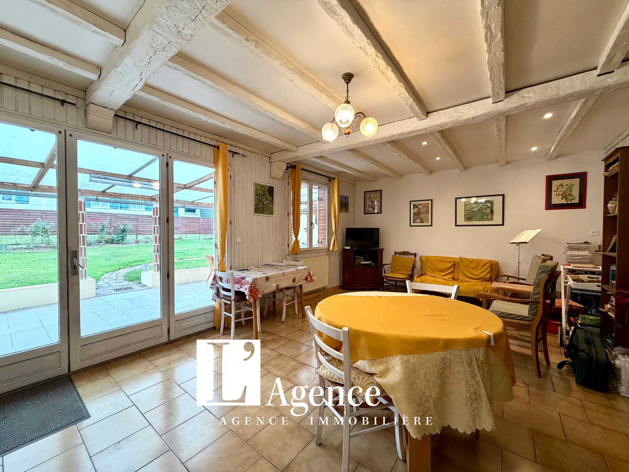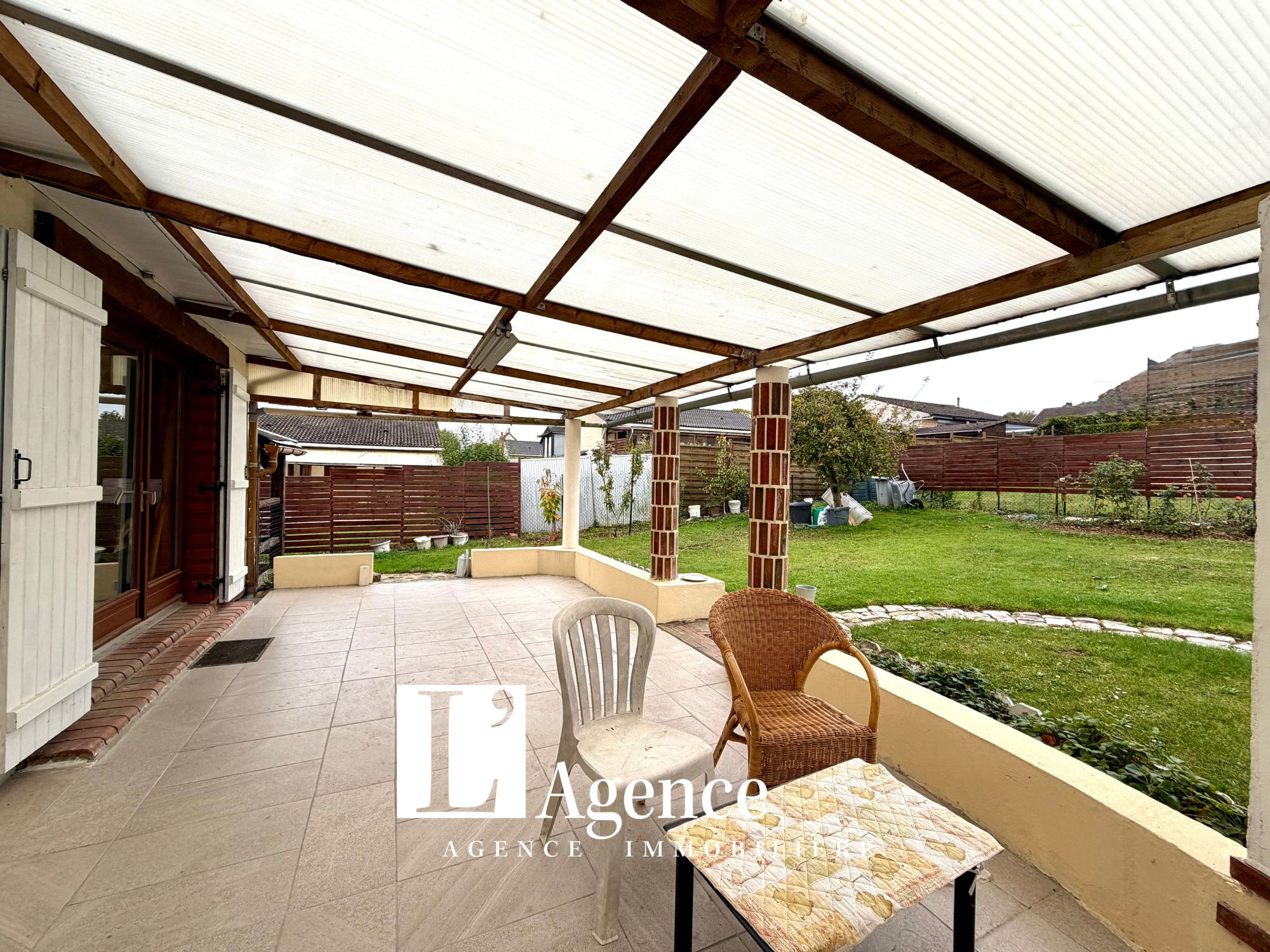 Pavillon de type 5 aux portes de Beauvais offrant une entrée, un dégagement distribuant un séjour double, une cuisine aménagée, une salle d’eau avec WC et 3 chambres (dont 1 avec WC et lave mains). Terrasse couverte. Sous-sol total. Atelier. Garage. Terrain clos de 560 M2.