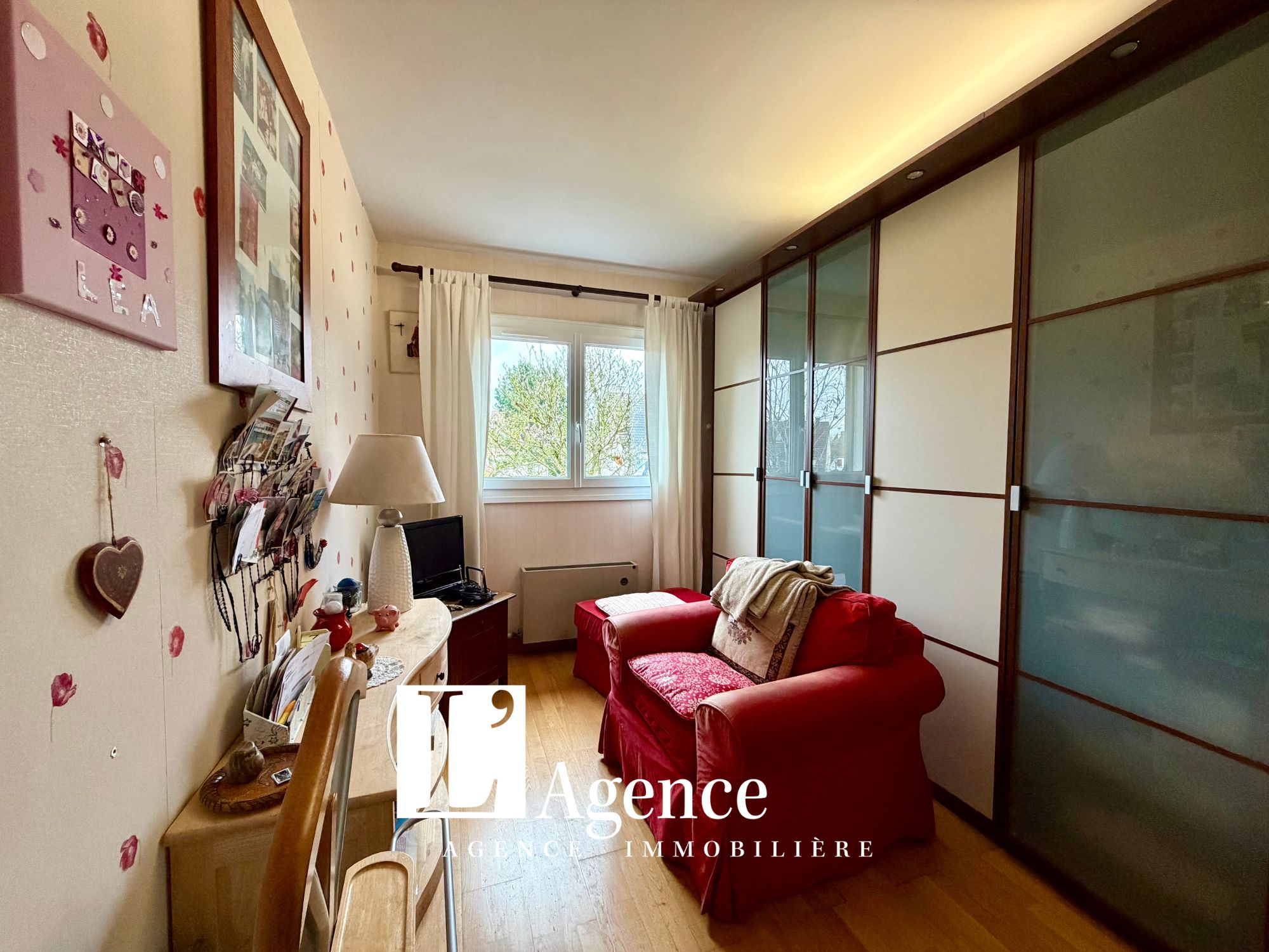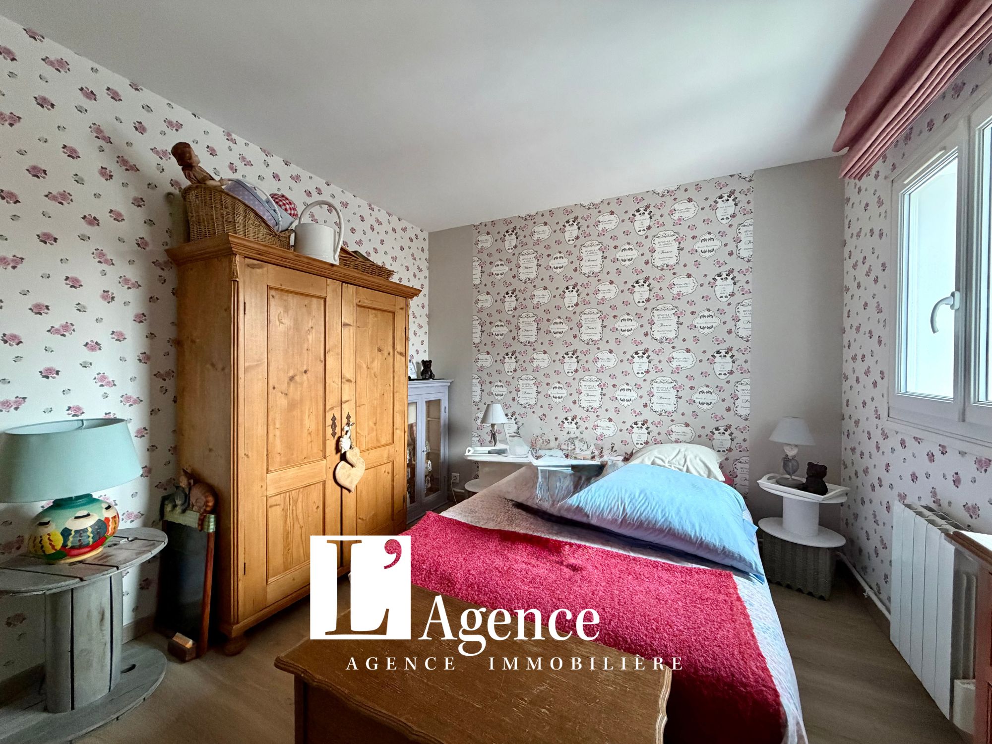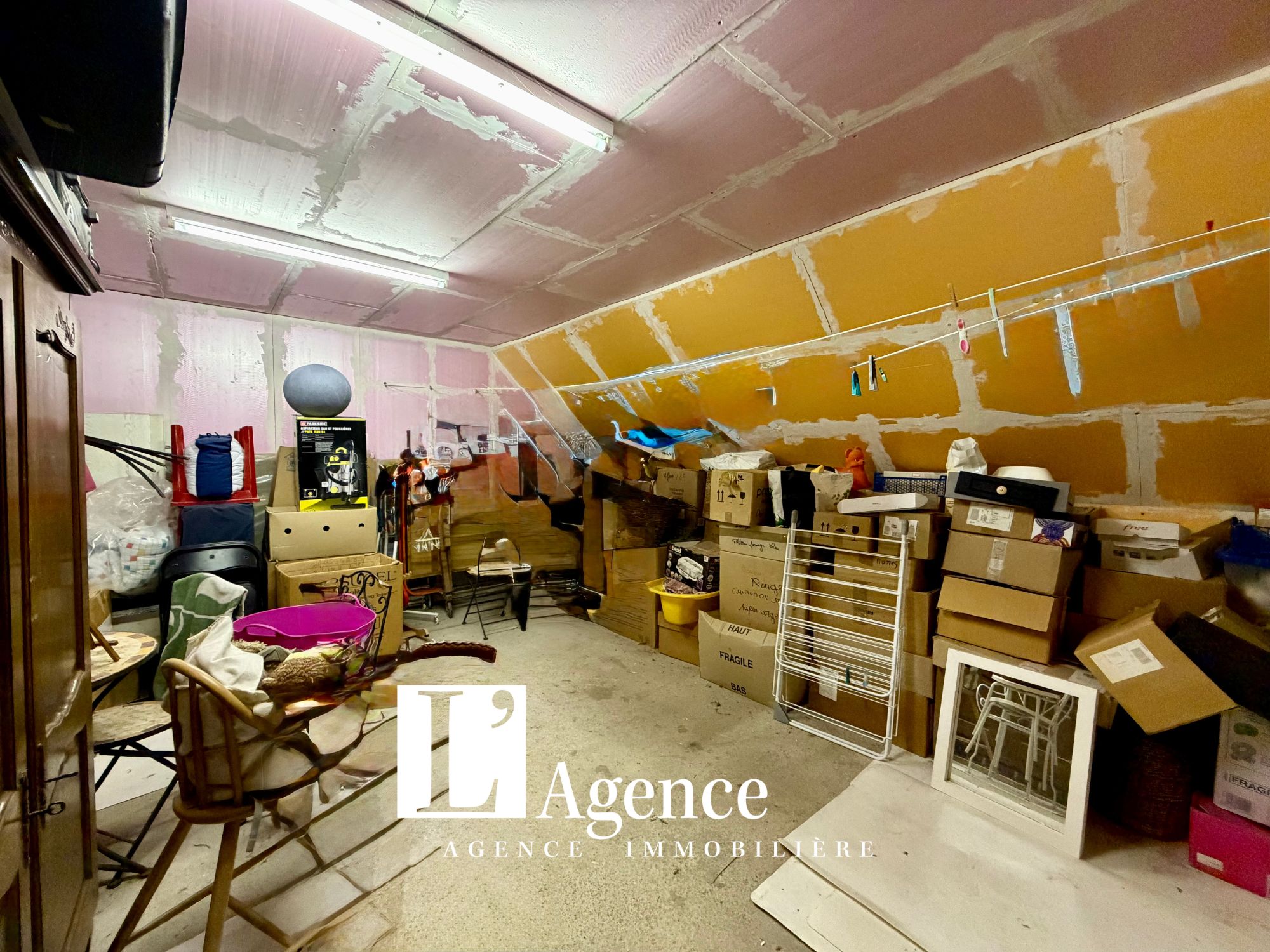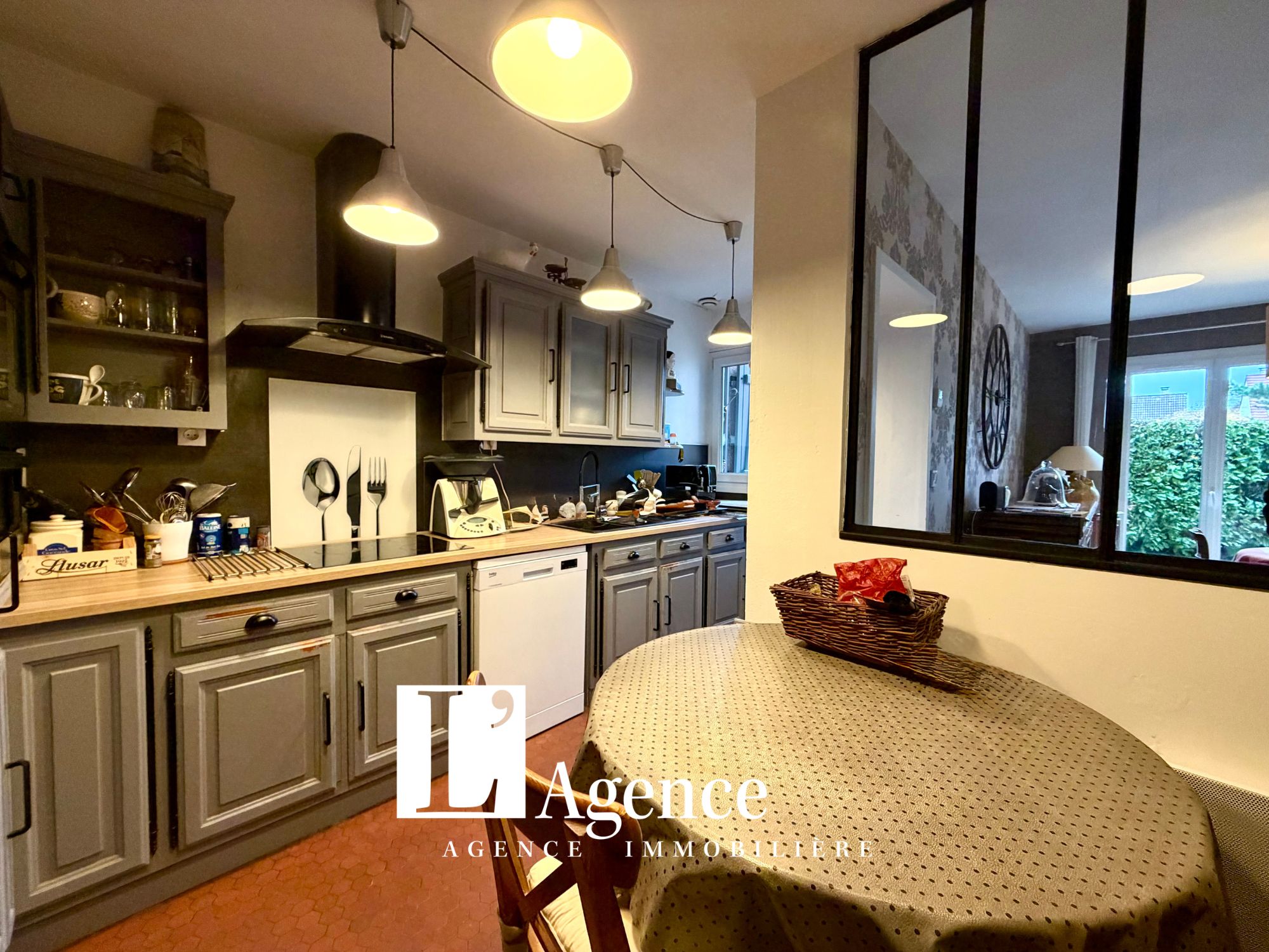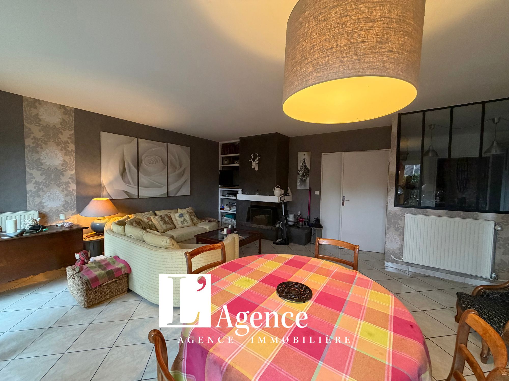 Pavillon 5 pièces offrant une entrée avec placard, un WC avec lave mains, une salle à manger-salon avec cheminée et une cuisine aménagée. Au 1er étage un palier distribuant une suite parentale avec salle de bains, deux chambres dont une avec une pièce attenante (bureau) et une salle d’eau avec WC. Au 2ème étage un grenier aménageable. Terrasse. Garage. Terrain clos de 239 M2.
