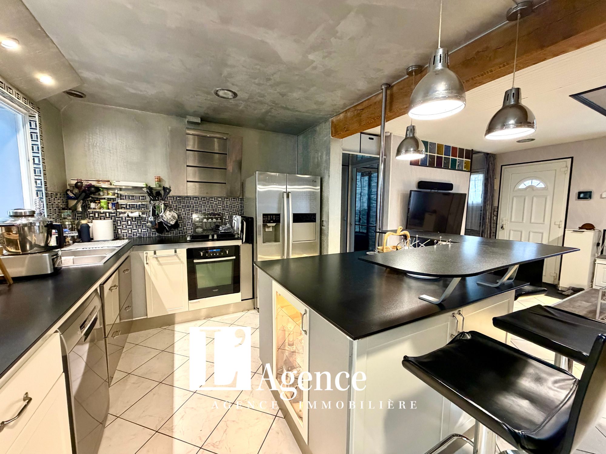 Pavillon individuel 5 pièces offrant un salon avec cheminée insert, une cuisine aménagée ouverte, une salle à manger, WC et une suite parentale (avec salle d’eau). A l’étage deux chambres, une salle de bains et WC. Buanderie. Dépendances. Terrasse. Terrain clos de 533 M2.